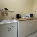 - ❓¿Hay una cocina disponible en el apartamento para uso de los huéspedes?Sí, el apartamento está equipado con una cocina completa y ofrece también un horno de microondas, un hervidor eléctrico y menaje de cocina.